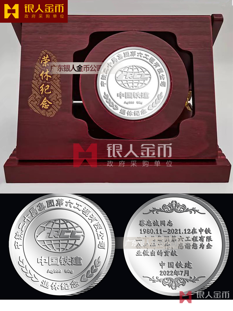 央企国企中铁二十局集团公司职工员工荣誉退休纪念章(银质纯银)【广东省金币公司】