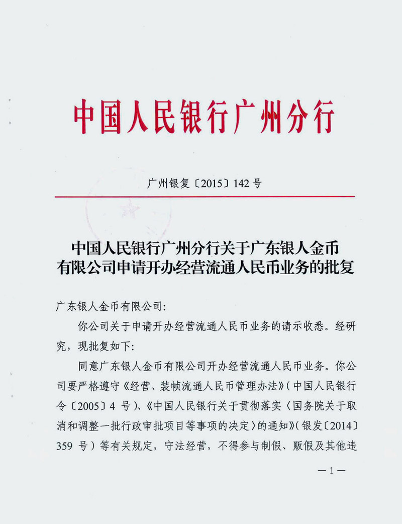 持有央行颁发的《经营流通人民许可证》。