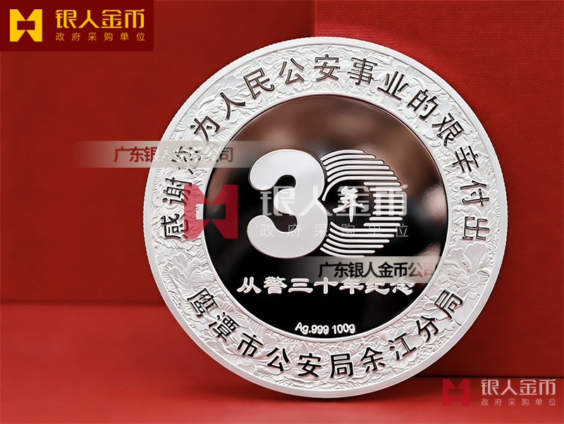 民警退休纯银纪念章定做无疑是一种特殊的存在。它不仅是一枚银币,更是一份对狱警辛勤工作的敬意和感谢,是他们为社会安定、人民安宁付出的独特贡献的象征。这枚退休纪念章的设计独特,融入了民警的工作特点和精神风貌。币面中央是一位庄重的狱警形象,他身着制服,手握警棍,眼神坚定而深邃,仿佛在诉说着无数个日夜坚守岗位的故事。币面边缘则雕刻着精细的图案,象征着狱警们严谨、公正、无私、奉献的职业精神。