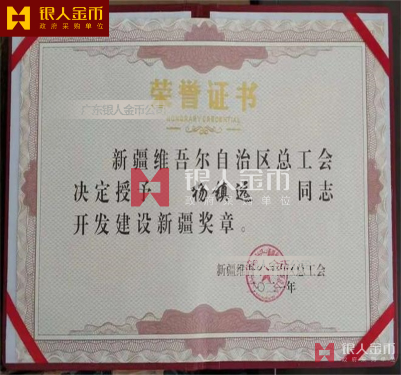 开发建设新疆奖状、奖牌、奖章、勋章、纪念章、徽章、胸章、证书、牌匾