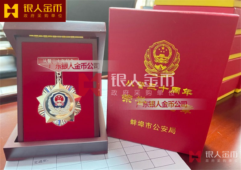 广东银人金币公司设计制作生产制作定制定做了安徽省公安厅公安局从警三十周年纪念章民警荣退暨从警纪念章广东银人金币有限公司(《黄金经营许可证》《贵金属制品生产资质》《贵金属经营许可证》)政治工作部 --- 勋章、奖章、奖牌、纪念章、证章、徽章制造单位!党政军单位 --- 功勋章、勋功章、荣誉称号功臣、功勋证章制造商!安徽省公安厅蚌埠市公安局民警荣退暨从警三十周年荣誉纪念章【公安部从警纪念章发放条件】广东银人金币公司设计制作公安部公安厅公安局从警三十年纪念章、从警十年纪念章、从警二十年纪念章、公安民警光荣退休纪念章、警察光荣退休荣誉纪念章、旗下广州天河恒帆徽章厂有限公司生产制造定制订制定做订做了公安部公安厅公安局公安机关公安系统从警三十周年荣誉纪念章、从警四十周年荣誉纪念章、从警十周年荣誉纪念章、从警二十周年荣誉纪念章。并且有授权合法资质,得到了广大公安民警干警警察的认可与好评。