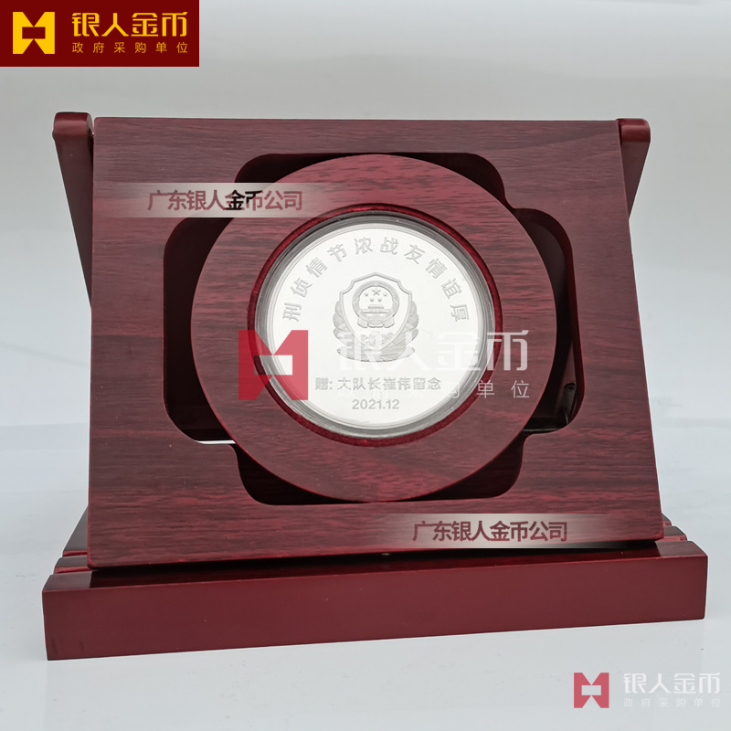 民警退休纯银纪念章定做无疑是一种特殊的存在。它不仅是一枚银币,更是一份对狱警辛勤工作的敬意和感谢,是他们为社会安定、人民安宁付出的独特贡献的象征。这枚退休纪念章的设计独特,融入了民警的工作特点和精神风貌。币面中央是一位庄重的狱警形象,他身着制服,手握警棍,眼神坚定而深邃,仿佛在诉说着无数个日夜坚守岗位的故事。币面边缘则雕刻着精细的图案,象征着狱警们严谨、公正、无私、奉献的职业精神。