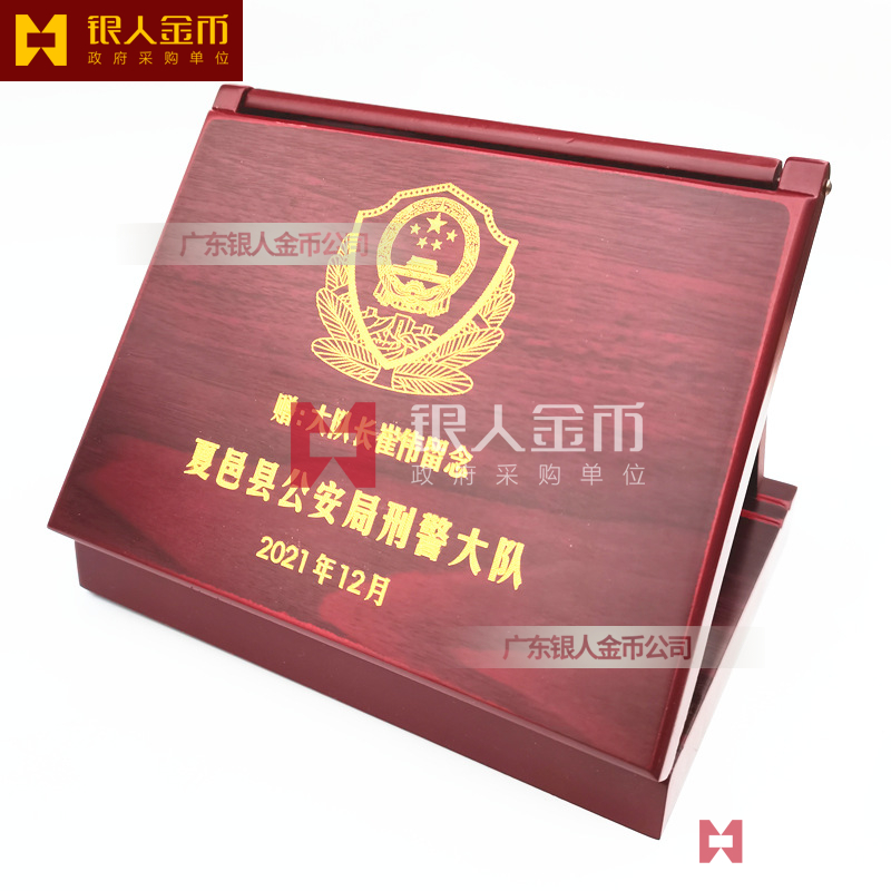 从警纪念章是常见的退休纪念品,一般按从警年限分为10周年、20周年、30周年三类,材质随年限递增。例如,10周年纪念章多为铜质,20周年为银质,30周年则为纯银表面电镀24k金。纪念章设计通常包含两面:一面刻有“警徽”“公安局名称”等标识,体现职业属性;另一面刻有“Ag999 100g”“入警时间”“办公大楼图案”等信息,记录从警关键节点。纪念章一般配有木盒包装,便于保存和展示。