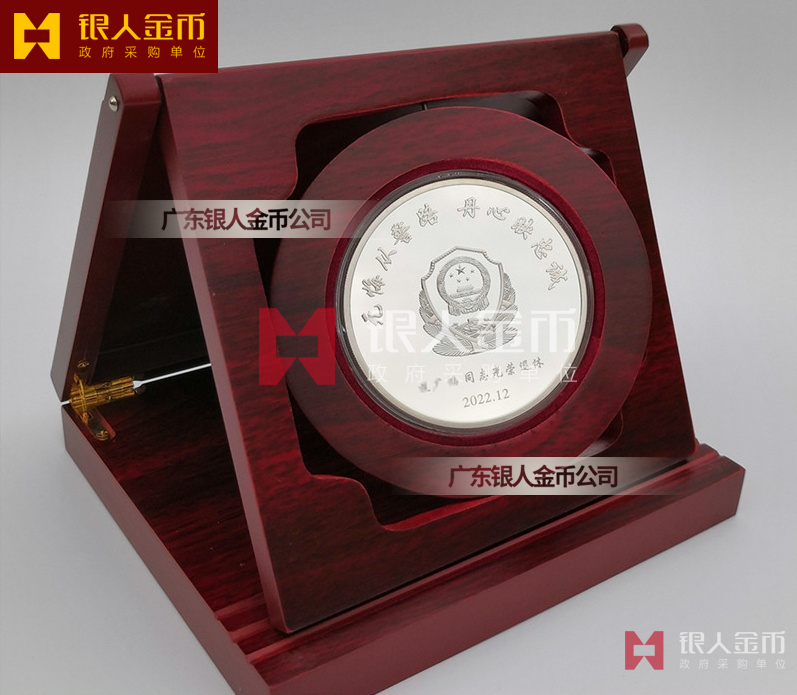 民警退休纯银纪念章定做无疑是一种特殊的存在。它不仅是一枚银币,更是一份对狱警辛勤工作的敬意和感谢,是他们为社会安定、人民安宁付出的独特贡献的象征。这枚退休纪念章的设计独特,融入了民警的工作特点和精神风貌。币面中央是一位庄重的狱警形象,他身着制服,手握警棍,眼神坚定而深邃,仿佛在诉说着无数个日夜坚守岗位的故事。币面边缘则雕刻着精细的图案,象征着狱警们严谨、公正、无私、奉献的职业精神。